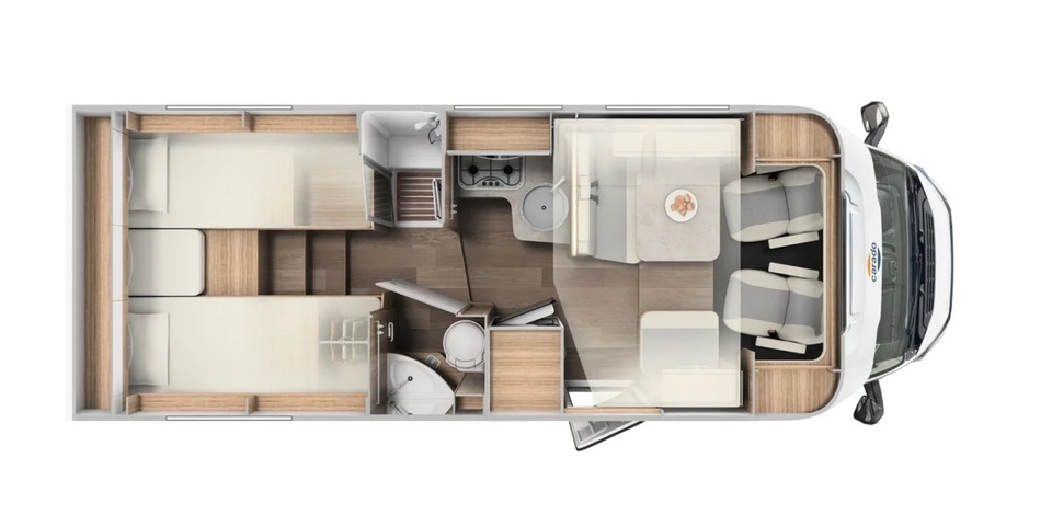 Carado T448 Pro+, automaatti, pituus 7,38m, vm 2025 Rekisteröity viidelle, viides istuin on ”väliaikainen” auto sopii parhaiten neljälle.
