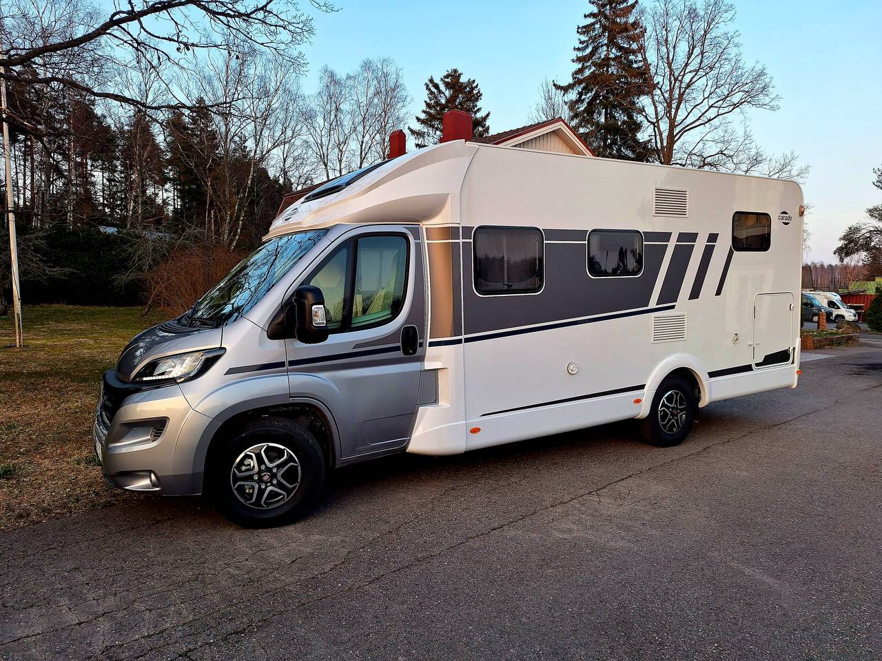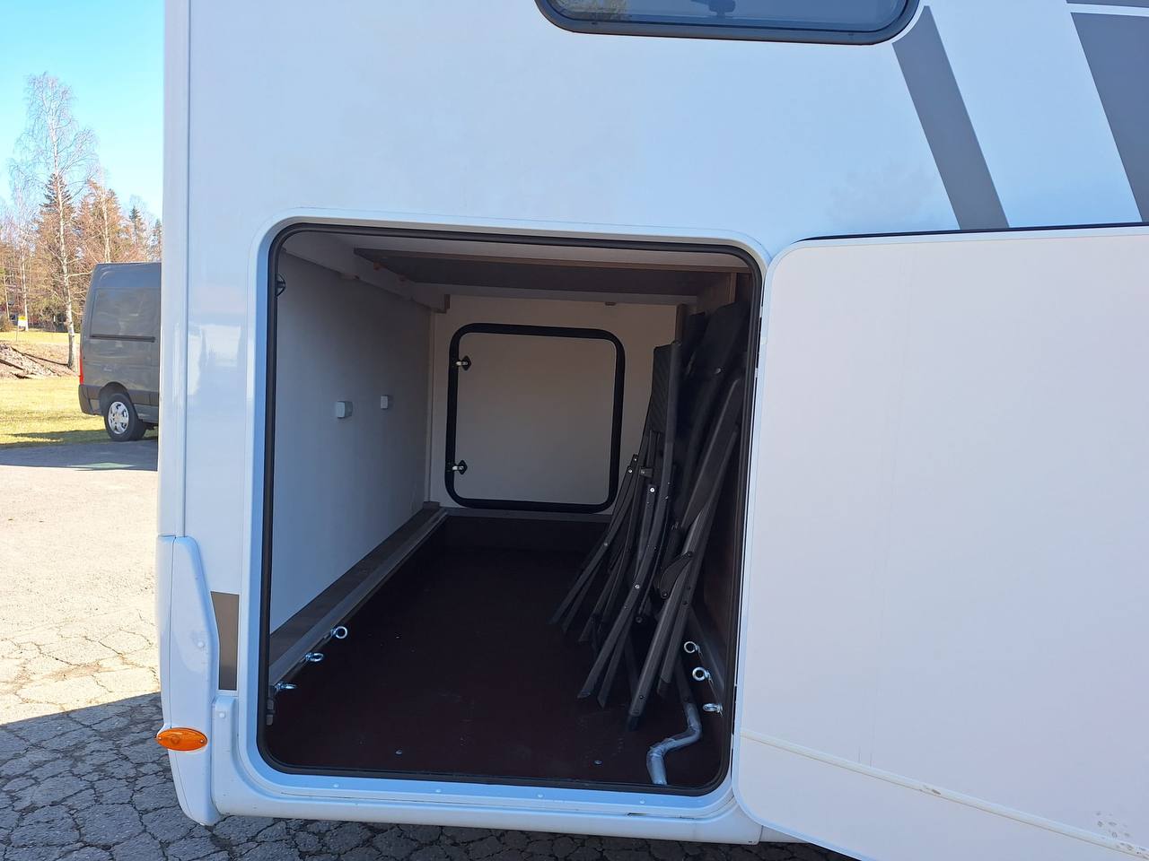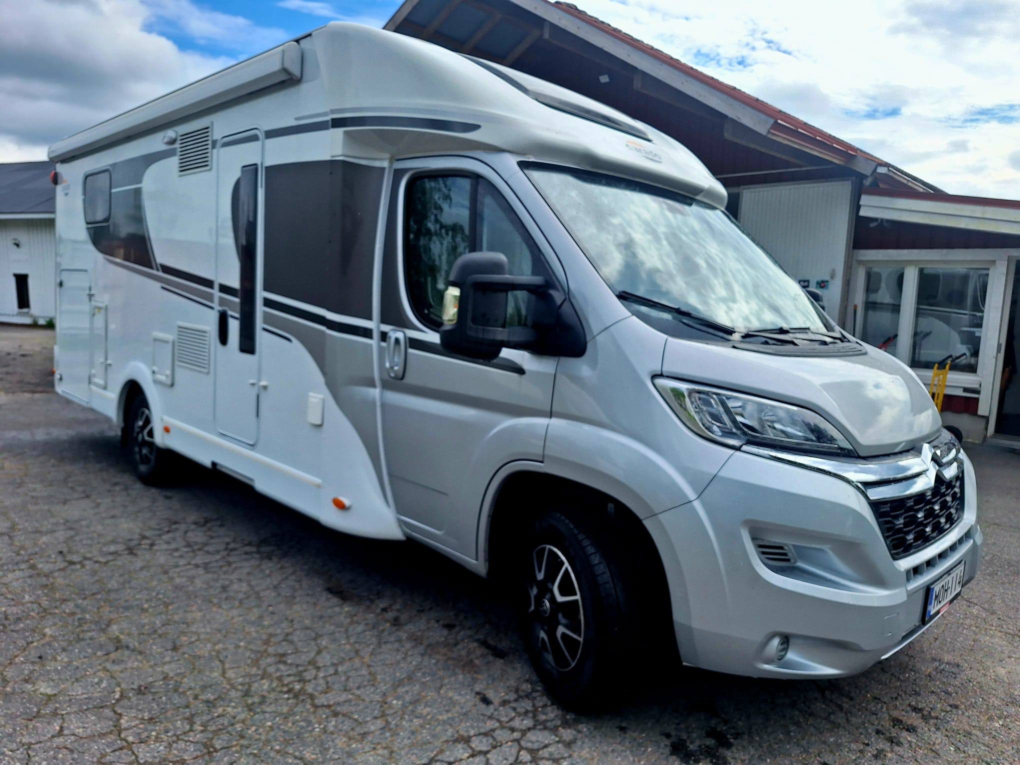 Nukkumispaikkoja neljälle, parisänky takana ja alas laskettava ylävuode kahdelle, saa ajaa 120 km/h, 131 hv, ajotietokone, pyöräteline x 4, ilmastointi, iso jääkaappi ja erillinen pakastin, sähkö ja kaasu lämmitys, lattialämmitys, peruutuskamera, radio, erittäin iso tavaratila takana, markiisi, puutarhapöytä, 4 tuolia, astiat viidelle, ym. Auto sopii parhaiten 1-4 henkilöille.